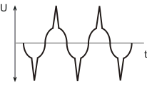 - Искажения на выходе источников бесперебойного питания при работе от батарей. Форма напряжения от меандра (почти прямоугольные импульсы) до практически чистой синусоиды. Форма зависит от принципа построения UPS и его цены. - Искажения при перегрузке трансформатора, когда он работает в режиме близком к насыщению. Приблизительная форма выходного напряжения характеризуется пикообразными выбросами напряжения и представлена на рисунке. - Искажения синусоиды на выходе тиристорных регуляторов напряжения. Сопровождается радиочастотными помехами. ОСОБЕННОСТИ НЕКОТОРЫХ ТИПОВ НАГРУЗОК При проектировании следует учитывать стойкость устанавливаемого электрооборудования к проявлению различных факторов воздействия со стороны сети. Ниже приведены особенности питания некоторых типов нагрузки. Электрооборудование, оснащенное импульсным источником питания (вычислительная техника, офисное оборудование, приборы, аудио-видеоаппаратура и пр.) мало критично к уровню напряжения и, как правило, устойчиво работает в диапазоне от 185 до 250 В (в некоторых телевизорах от 130 до 260 В). Допустимо даже прерывание напряжения до 0,3 с, если оно не сопровождается существенными помехами. Однако высокочастотные помехи от 150 кГц и выше легко проходят через блок питания в аппарат. Опасным являются также импульсные перенапряжения, могущие вызвать пробой транзистора в преобразователе блока питания. В большинстве случаев сам источник имеет и фильтр, и варистор для защиты от помех, но они способны защитить лишь от слабых воздействий по сети. Для трехфазных двигателей основную опасность представляет перекос фаз, при котором резко возрастает перегрев двигателя с последующим выходом из строя. К помехам и кратковременному прерыванию напряжения некритичны.