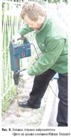 Погружать стержни в грунт можно двумя способами: вибрацией и забиванием вручную. Забивка вручную приемлема в глинистых грунтах, но все же это всегда лучше делать вибромолотом (рис.4). Для этого изготовители заземления выпускают специальные детали (головки, стаканы, переходники) для электроинструмента. Нужно сказать, что сегодня существуют целые фирмы, специализирующиеся на забивке электродов, что говорит о масштабах применения технологии СЗВЭ.