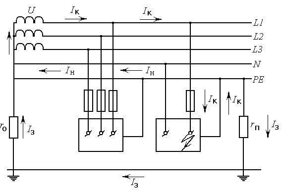Рассмотрим назначение этих элементов применительно к наиболее распространенным электрическим сетям – трехфазным переменного тока.