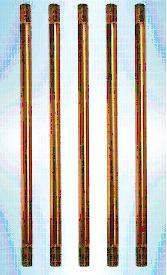 В качестве глубинного заземлителя мы применяем заземляющие омедненные стержни с толщиной медного покрытия - не менее 0,25мм, длиной 1,5м . На каждом конце этих стержней нанесена холоднокатаная резьба, предназначена для соединения с помощью муфт. Для облегчения забивания оба конца высокопрочных соединительных муфт снабжены резьбовыми насадками и скошены. Данная методика позволяет забивать глубинные заземлители при использовании вибромолота, с постепенным наращиванием от 1,5м до 32м., сопротивление которых уже не зависит от погодных условий. Мы получаем стабильное и низкоомное сопротивление растеканию основных заземлителей на протяжении всего срока службы контура не менее 30 лет.